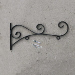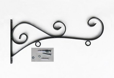 Heavy-duty steel hanging sign bracket with scroll design accommodating a sign 15″ to 22″ in size. Black poly coated to ensure long life. For commercial use.