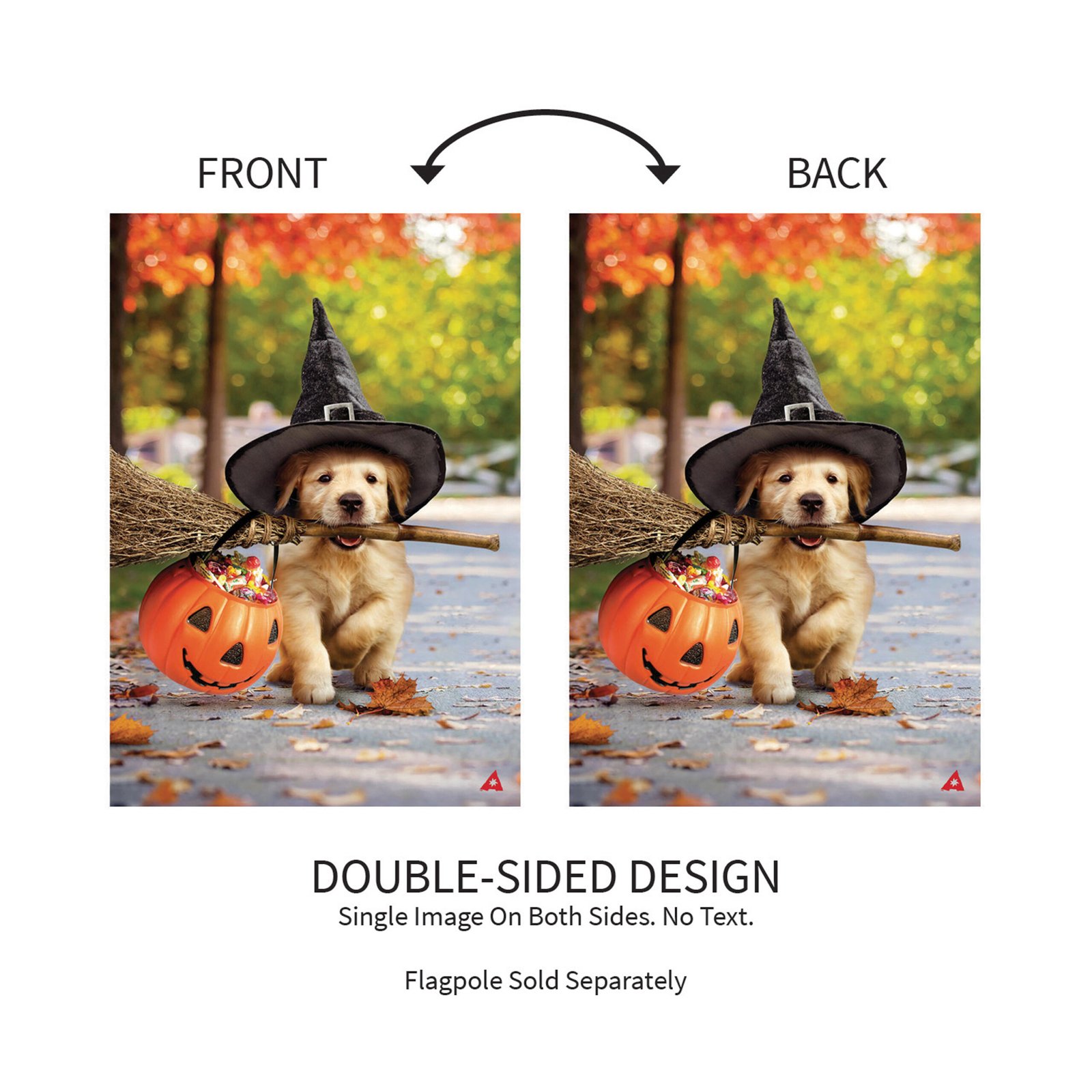 Give any garden or outdoor space an extra special touch with this sweet Golden Puppy garden flag. 29″ W x 43″ L