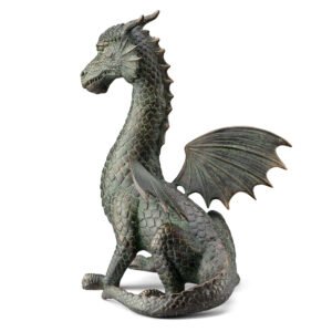 This whimsical dragon statue is beautifully detailed, with all the elements a dragon should have — an armored breast plate, a long scaly tail, pointy horns, and graceful wings. It bears a thoughtful expression, perhaps thinking about protecting its vast mountain treasure, its years frolicking in the autumn mist by the sea, or an impending fire-breathing adventure. Crafted of weather-resistant aluminum so it can rest just as well in your garden or your living room. Whether you name your dragon Smaug, Puff, Rhaegal, Norberta, or just Dragon, we’re sure it will conjure fond memories of tales of mystical, magical lands and faraway places.